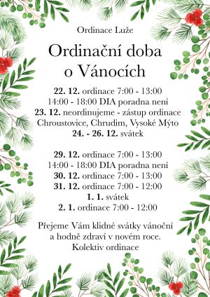 OTEVÍRACÍ DOBA VÁNOČNÍ SVÁTKY 2025