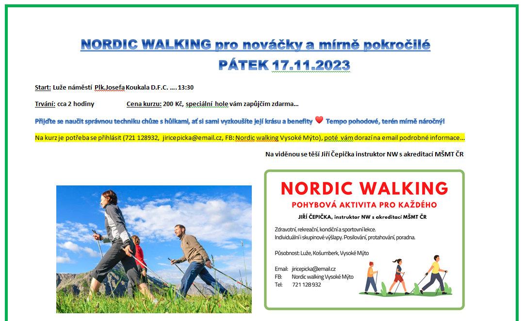 Nordic Walking - pohybová aktivita pro každého 17. 11. 2023 v 13,30h. - náměstí Luže