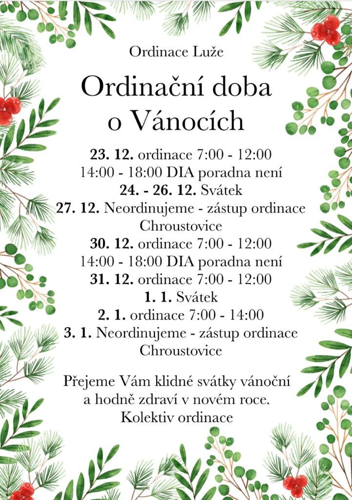 Ordinace v Luži - otevírací doba o vánočních svátcích